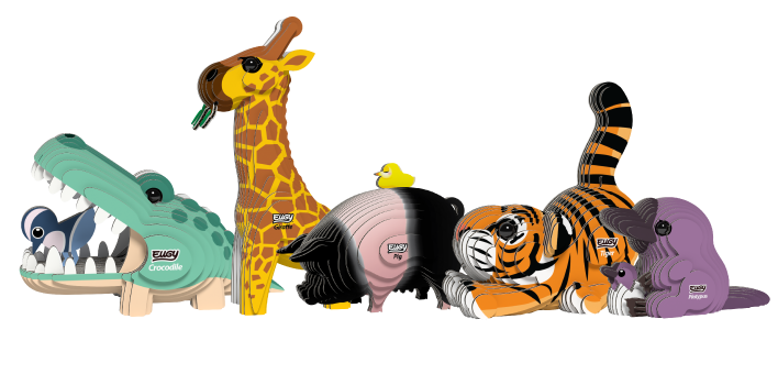 Upon his return home to New Zealand, he visited his local recycling centre and found stacks of cardboard – one of the most recyclable materials! After testing in his basement garage, the 3D cardboard animal puzzles were born.